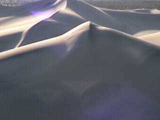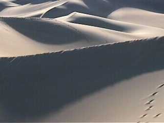 If one made an extreme timelapse of this place, the dunes would be seen to beat on the mountain like waves on a shore.