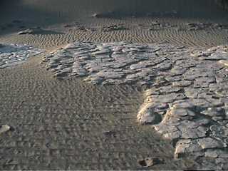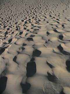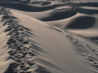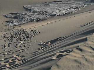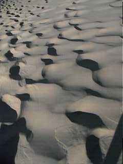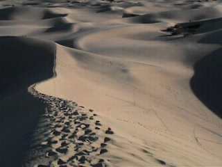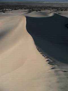 If one made an extreme timelapse of this place, the dunes would be seen to beat on the mountain like waves on a shore.