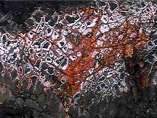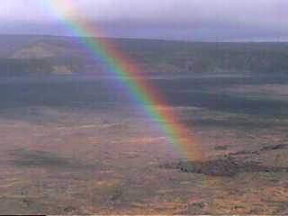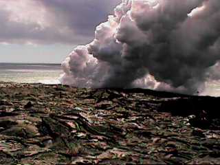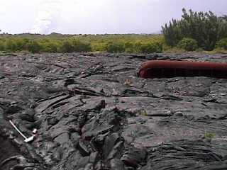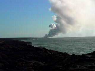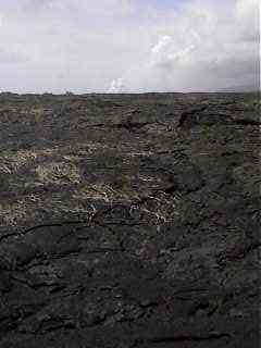Despite discouraging Park Service signs, i took a walk out to where lava (flowing under recent crust) dumps into the ocean. The steam plume is about 3 miles distant...
