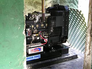 The brand-new town generator, and its house. It runs from 7-11pm daily...