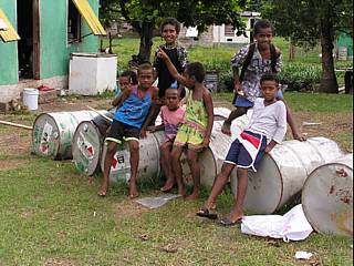 Each village is located around a central pond. The ponds (and adjacent wells), tho' a bit salty, are the source of all water for washing, cleaning, garden & animal watering, and toilet flushing. Taunovo Koro...