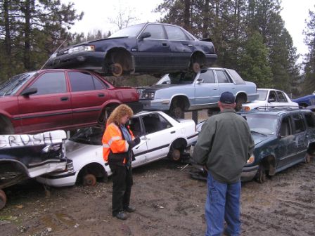 jan 9: Vehicle Extrication Training in Douglas City. Two hours of lecture at Douglas City Firehall was followed by training and practice at Douglas City Garage, where 5 wrecked cars were opened up with a variety of rescue tools. Over 40 firefighters attended, representing Weaverville, Douglas City, Lewiston, Down River, Trinity Center, Junction City, Hayfork, and Hyampom Volunteer Fire Departments. Thank you, Douglas City Garage, for making this critical training possible!